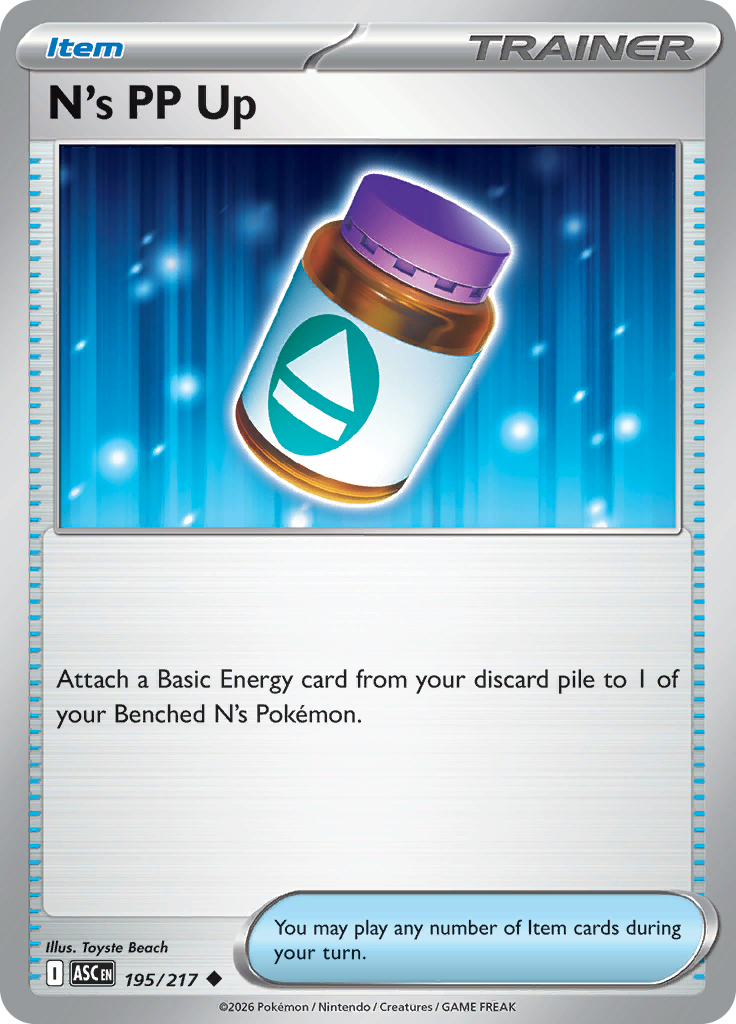 Attach a Basic Energy card from your discard pile to 1 of your Benched N's Pokémon.
