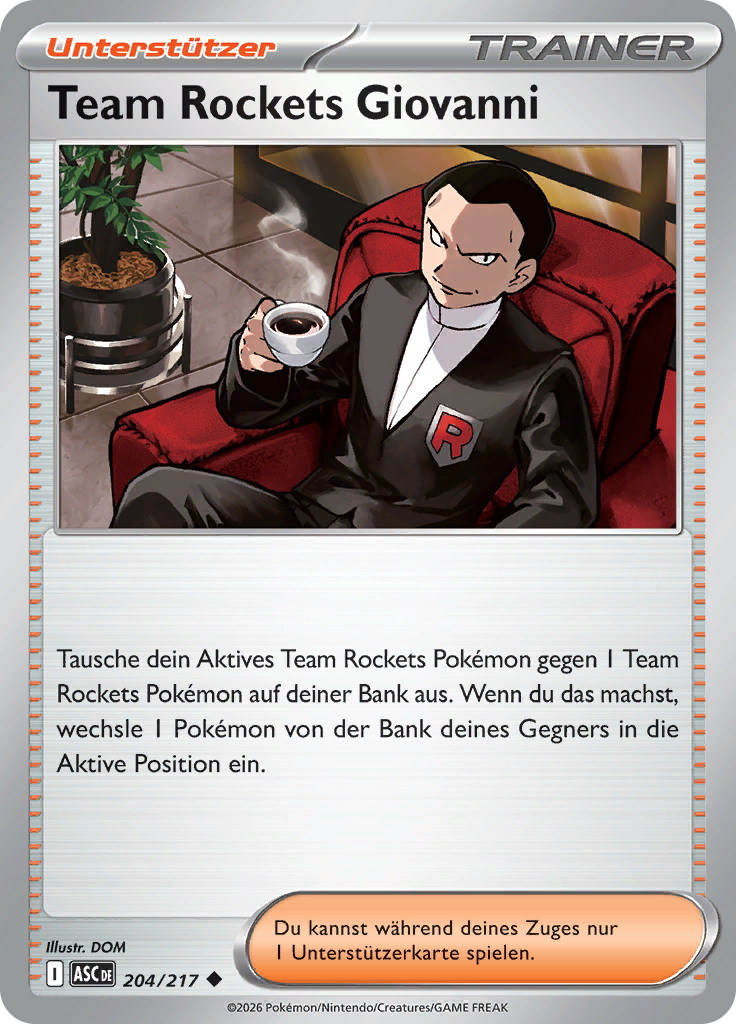 Tausche dein Aktives Team Rockets Pokémon gegen 1 Team Rockets Pokémon auf deiner Bank aus. Wenn du das machst, wechsle 1 Pokémon von der Bank deines Gegners in die Aktive Position ein.