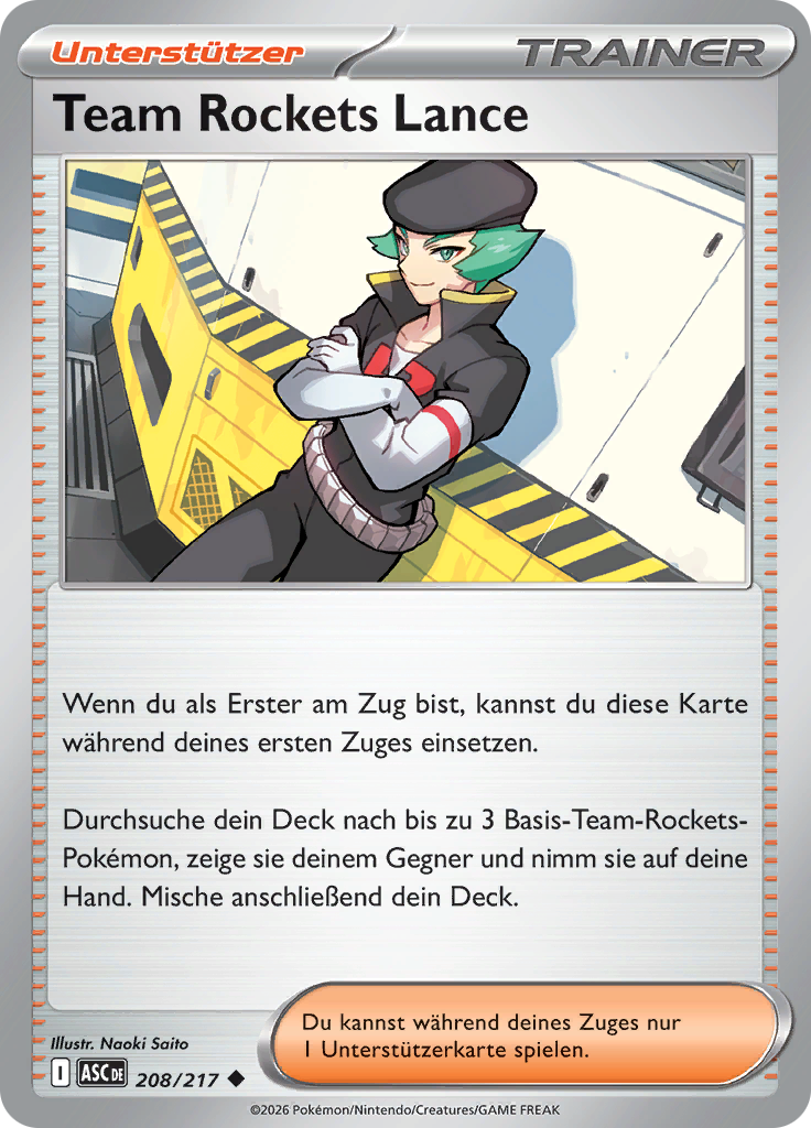 Durchsuche dein Deck nach bis zu 3 Basis-Team-Rockets-Pokémon, zeige sie deinem Gegner und nimm sie auf deine Hand. Mische anschließend dein Deck.