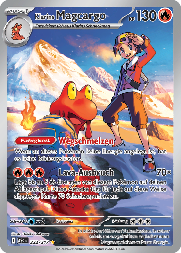 Lege bis zu 5 [R]-Energien von diesem Pokémon auf deinen Ablagestapel. Diese Attacke fügt für jede auf diese Weise abgelegte Karte 70 Schadenspunkte zu.