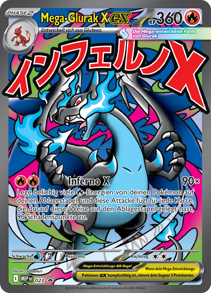 Lege beliebig viele [R]-Energien von deinen Pokémon auf deinen Ablagestapel, und diese Attacke fügt für jede Karte, die du auf diese Weise auf den Ablagestapel gelegt hast, 90 Schadenspunkte zu.