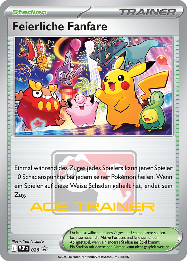 Einmal während des Zuges jedes Spielers kann jener Spieler 10 Schadenspunkte bei jedem seiner Pokémon heilen. Wenn ein Spieler auf diese Weise Schaden geheilt hat, endet sein Zug.