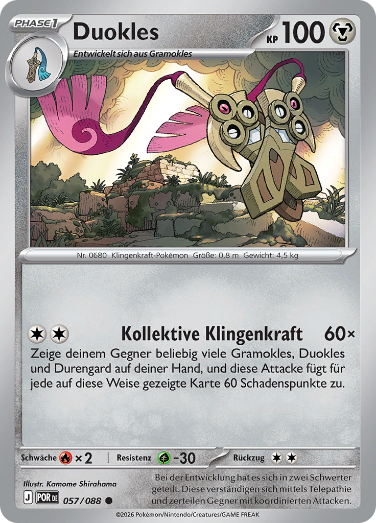 Zeige deinem Gegner beliebig viele Gramokles, Duokles und Durengard auf deiner Hand, und diese Attacke fügt für jede auf diese Weise gezeigte Karte 60 Schadenspunkte zu.