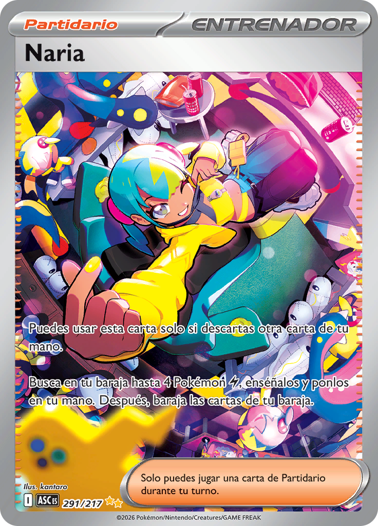 Busca en tu baraja hasta 4 Pokémon [L], enséñalos y ponlos en tu mano. Después, baraja las cartas de tu baraja.