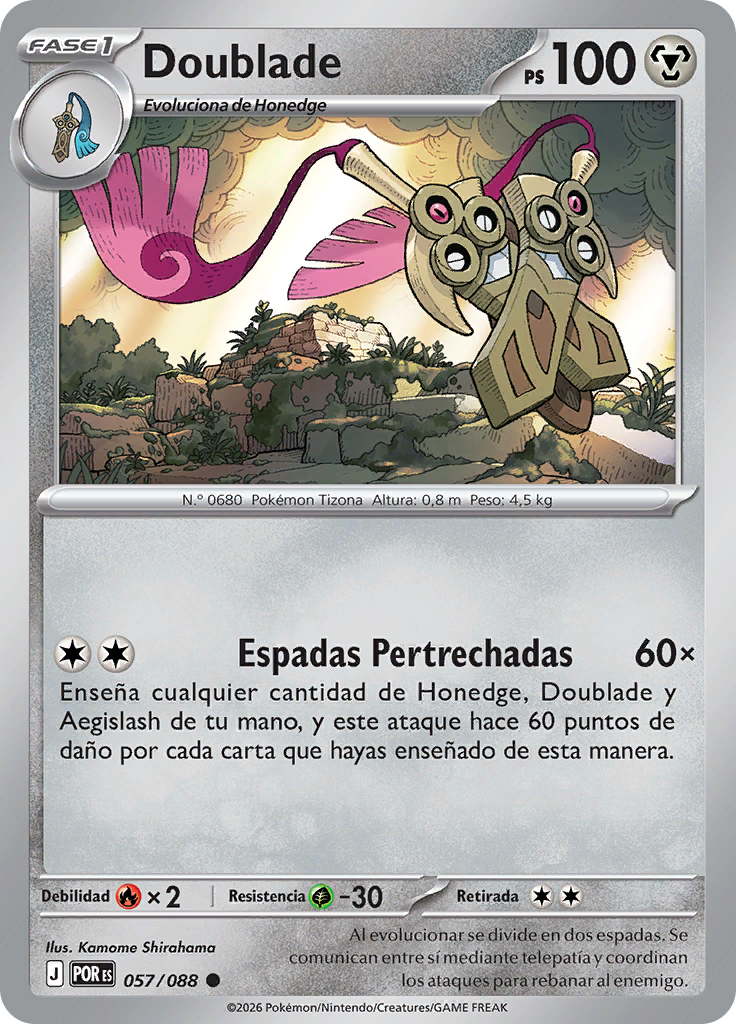 Enseña cualquier cantidad de Honedge, Doublade y Aegislash de tu mano, y este ataque hace 60 puntos de daño por cada carta que hayas enseñado de esta manera.