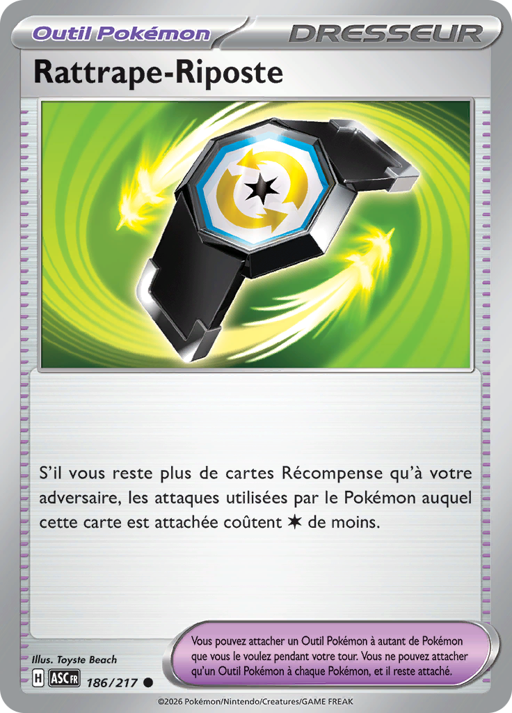 S'il vous reste plus de cartes Récompense qu'à votre adversaire, les attaques utilisées par le Pokémon auquel cette carte est attachée coûtent [C] de moins.