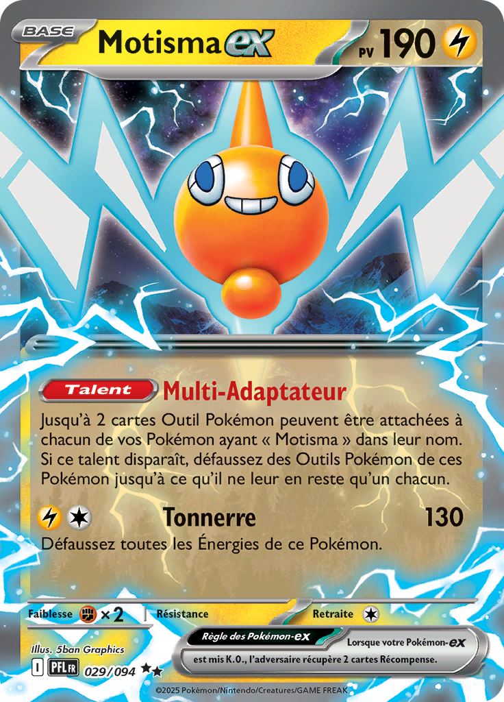 Jusqu'à 2 cartes Outil Pokémon peuvent être attachées à chacun de vos Pokémon ayant « Motisma » dans leur nom. Si ce talent disparaît, défaussez des Outils Pokémon de ces Pokémon jusqu'à ce qu'il ne leur en reste qu'un chacun.