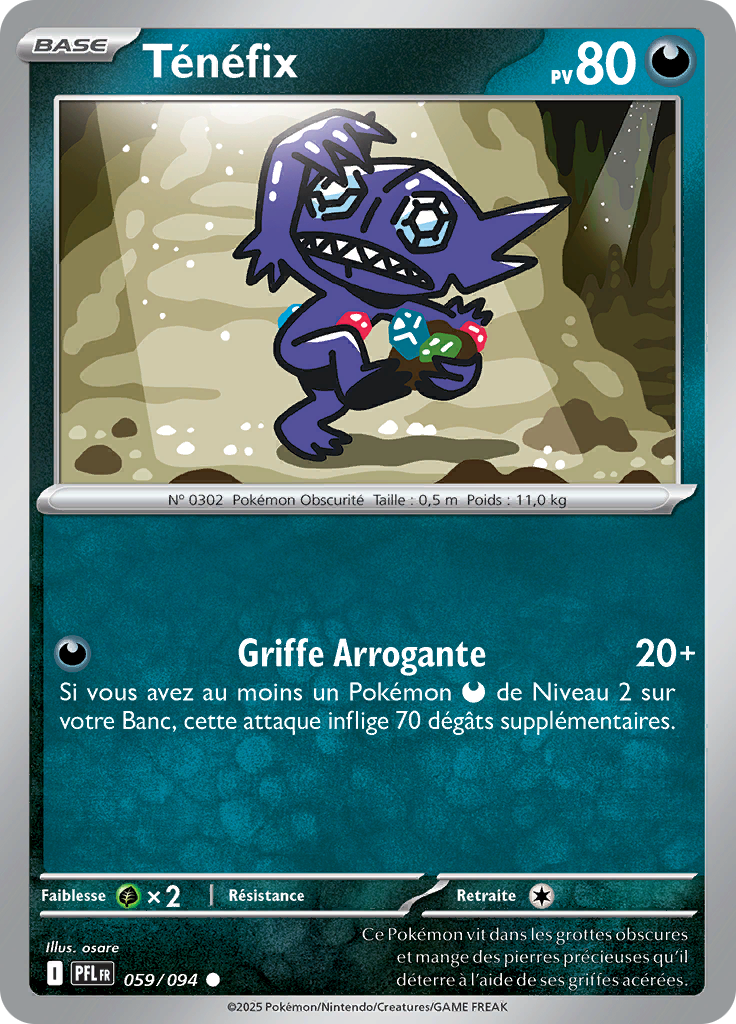 Si vous avez au moins un Pokémon [D] de Niveau 2 sur votre Banc, cette attaque inflige 70 dégâts supplémentaires.