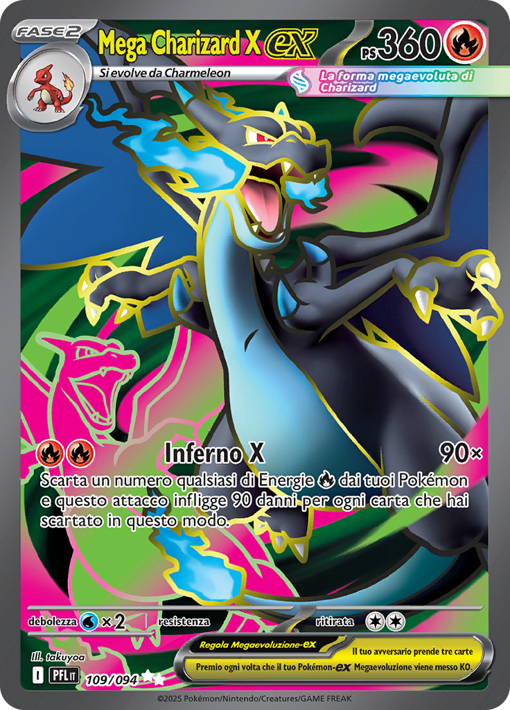 Scarta un numero qualsiasi di Energie [R] dai tuoi Pokémon e questo attacco infligge 90 danni per ogni carta che hai scartato in questo modo.