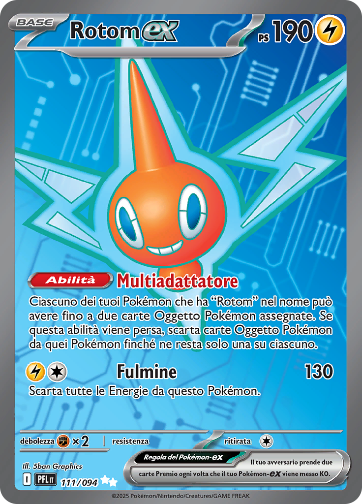 Ciascuno dei tuoi Pokémon che ha "Rotom" nel nome può avere fino a due carte Oggetto Pokémon assegnate. Se questa abilità viene persa, scarta carte Oggetto Pokémon da quei Pokémon finché ne resta solo una su ciascuno.