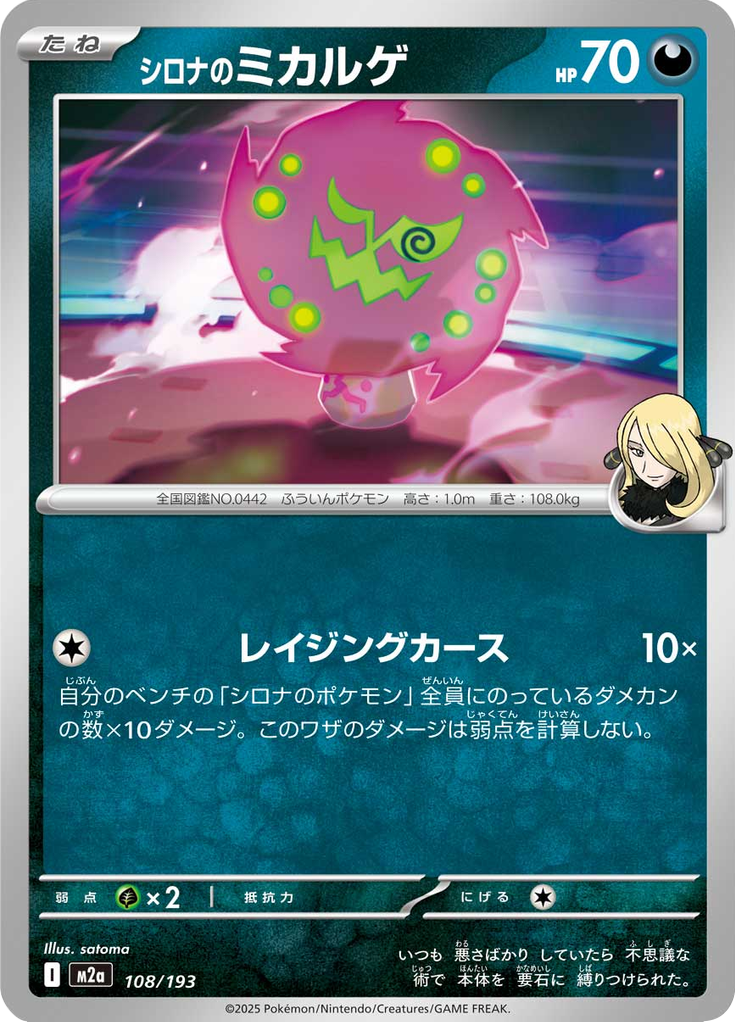 This attack does 10 damage for each damage counter on all of your Benched Cynthia's Pokémon. This attack's damage isn't affected by Weakness.