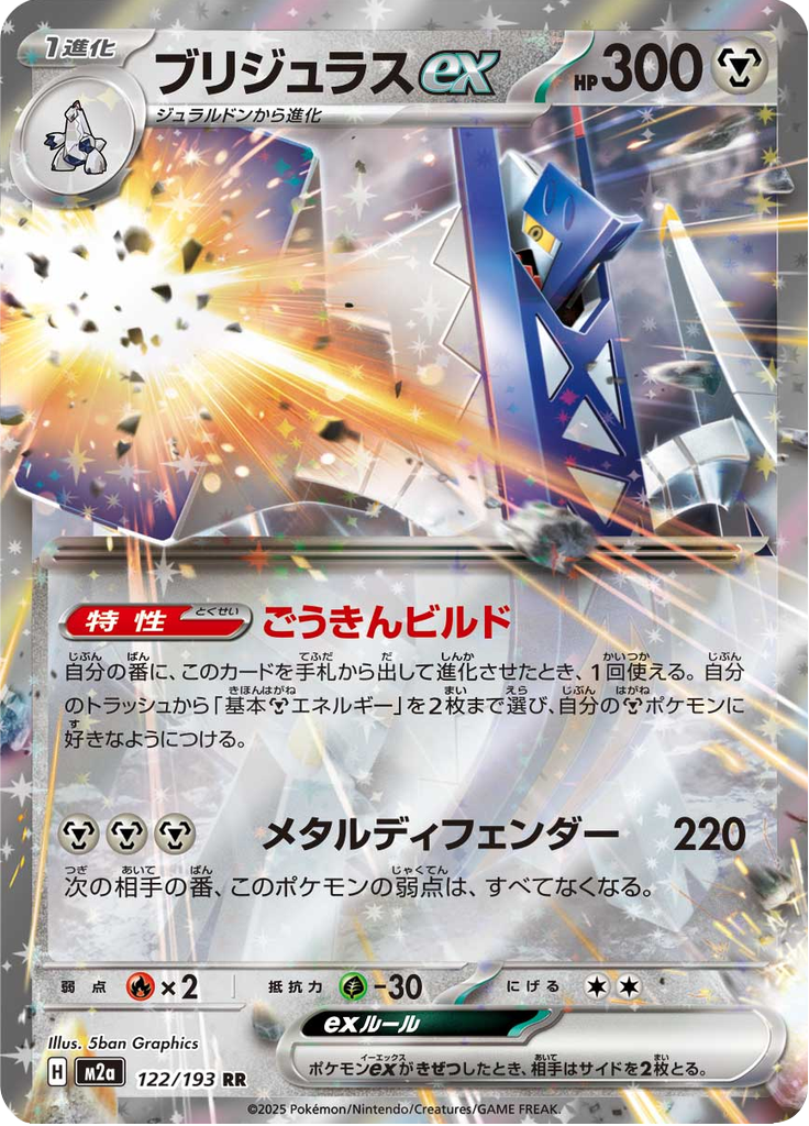 You may use this Ability when you play this Pokémon from your hand to evolve 1 of your Pokémon. Attach up to 2 Basic [M] Energy cards from your discard pile to your [M] Pokémon in any way you like.