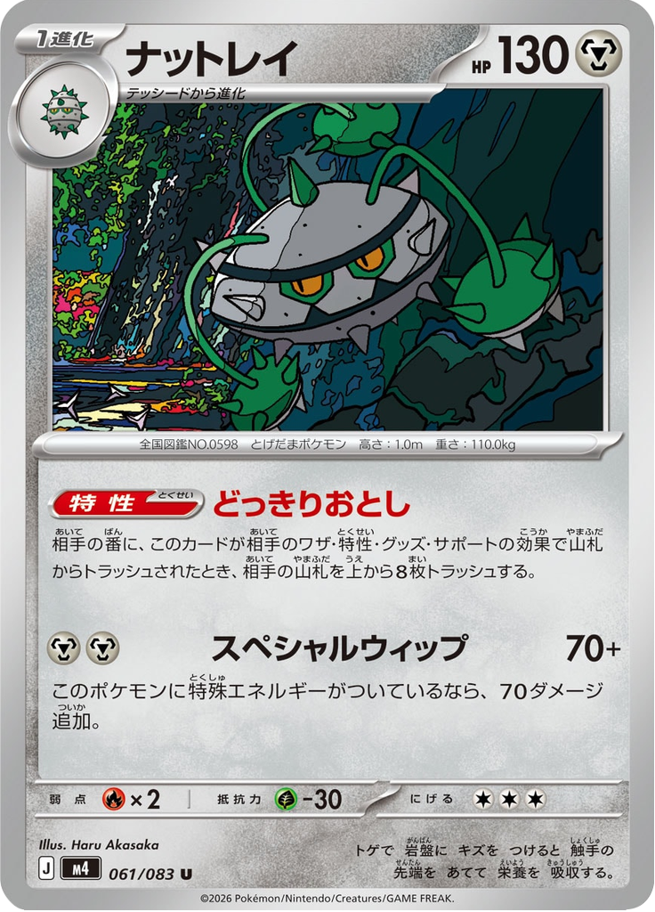 During your opponent's turn, if this card is discarded from your deck by an effect of your opponent's Attacks, Abilities, Items, or Supporter cards, your opponent discards the top 8 cards of their deck.