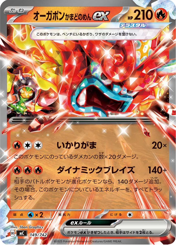 相手のバトルポケモンが進化ポケモンなら、140ダメージ追加。その場合、このポケモンについているエネルギーを、すべてトラッシュする。