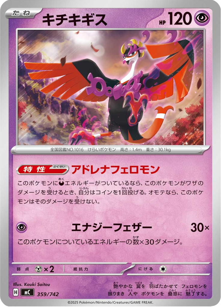 このポケモンに[D]エネルギーがついているなら、このポケモンがワザのダメージを受けるとき、自分はコインを1回投げる。オモテなら、このポケモンはそのダメージを受けない。