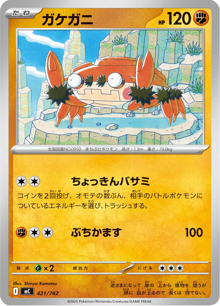 コインを2回投げ、オモテの数ぶん、相手のバトルポケモンについているエネルギーを選び、トラッシュする。