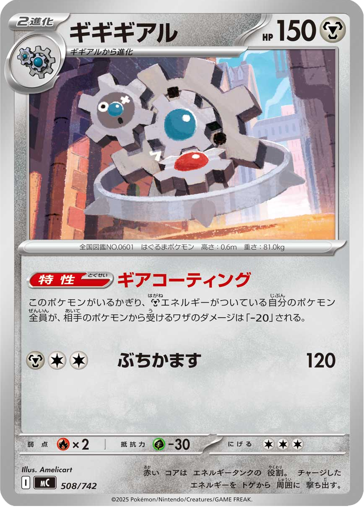 このポケモンがいるかぎり、[M]エネルギーがついている自分のポケモン全員が、相手のポケモンから受けるワザのダメージは「-20」される。