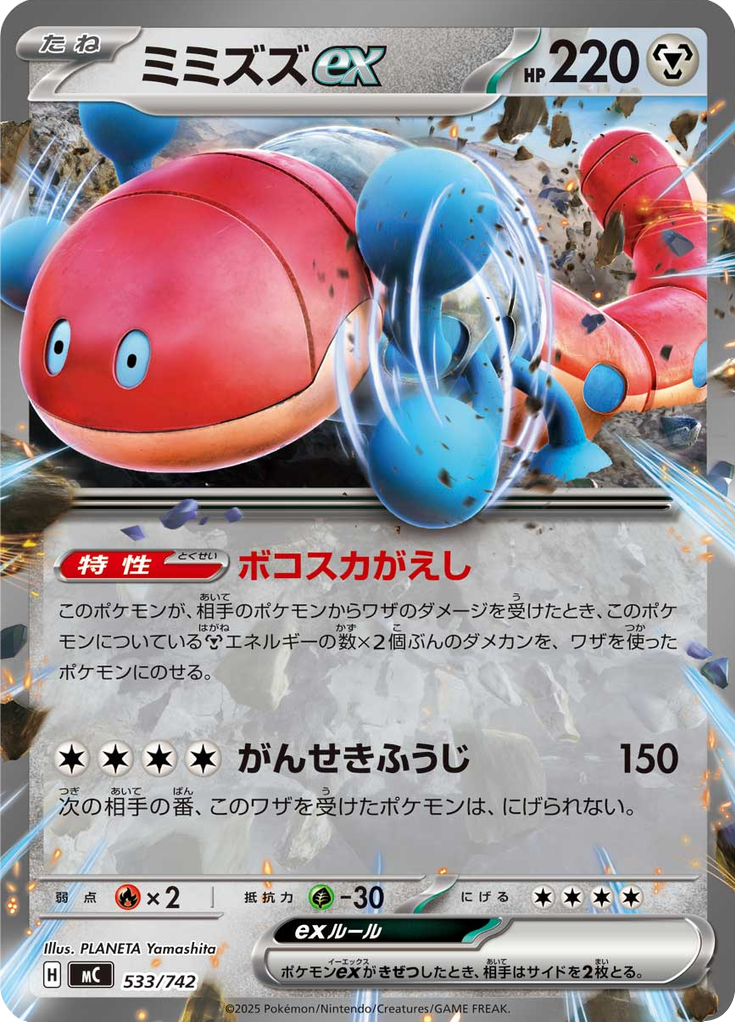 If this Pokémon is damaged by an attack from your opponent's Pokémon (even if this Pokémon is Knocked Out), put 2 damage counters on the Attacking Pokémon for each [M] Energy attached to this Pokémon.