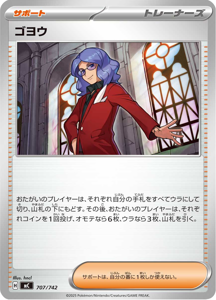 おたがいのプレイヤーは、それぞれ自分の手札をすべてウラにして切り、山札の下にもどす。その後、おたがいのプレイヤーは、それぞれコインを1回投げ、オモテなら6枚、ウラなら3枚、山札を引く。