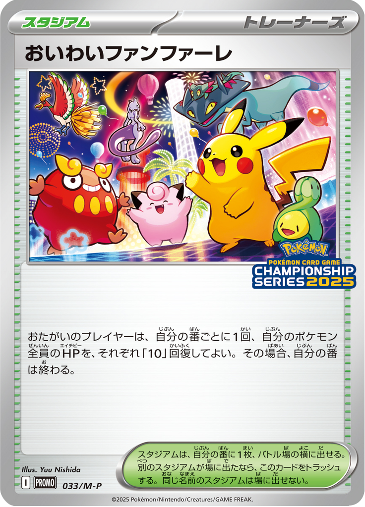 おたがいのプレイヤーは、自分の番ごとに1回、自分のポケモン全員のHPを、それぞれ「10」回復してよい。その場合、自分の番は終わる。