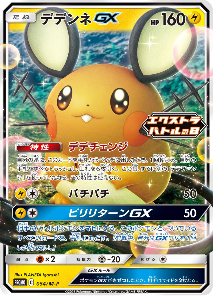 相手のバトルポケモンをマヒにする。このポケモンと、ついているすべてのカードを、手札にもどす。[対戦中、自分はGXワザを1回しか使えない。]