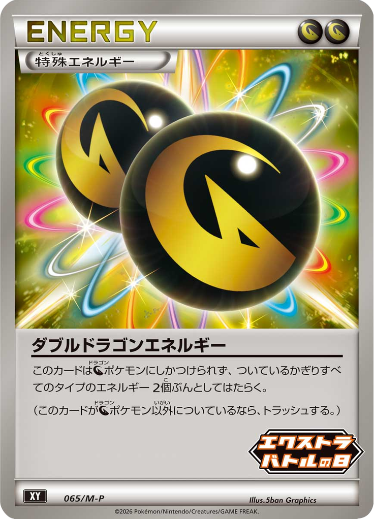 このカードは[竜]ポケモンにしかつけられず、ついているかぎりすべてのタイプのエネルギー2個ぶんとしてはたらく。