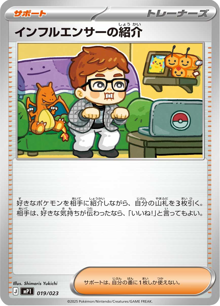 Draw 3 cards while introducing your favorite Pokémon to your opponent. If they share your enthusiasm, they may say ""Nice!"".