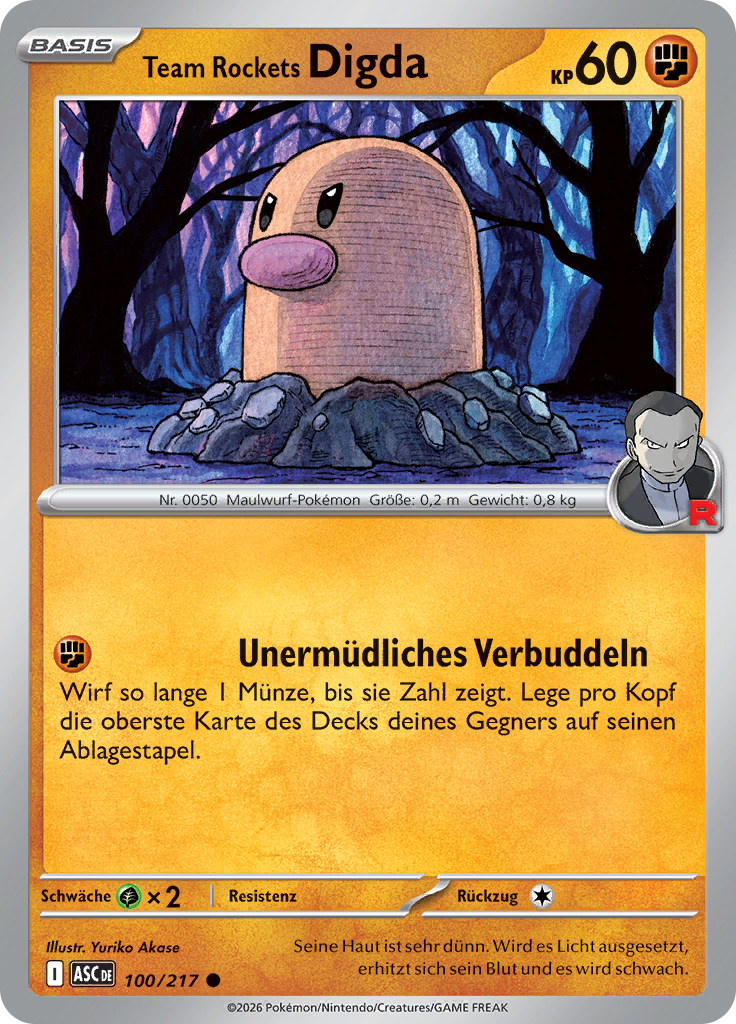 Wirf so lange 1 Münze, bis sie Zahl zeigt. Lege pro Kopf die oberste Karte des Decks deines Gegners auf seinen Ablagestapel.