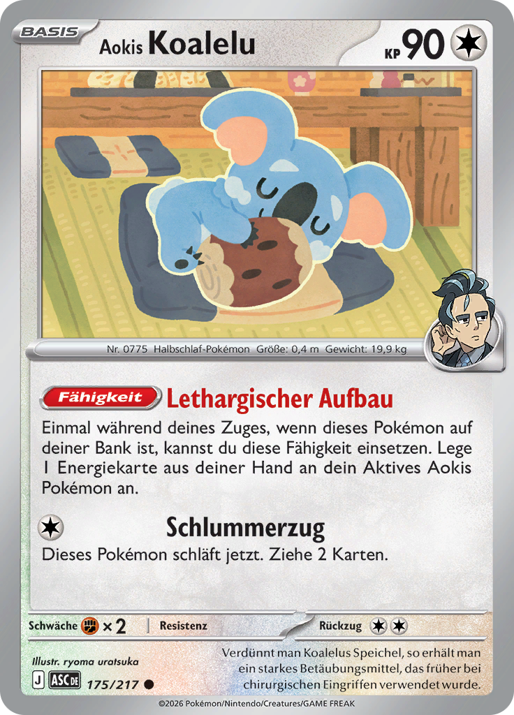 Einmal während deines Zuges, wenn dieses Pokémon auf deiner Bank ist, kannst du diese Fähigkeit einsetzen. Lege 1 Energiekarte aus deiner Hand an dein Aktives Aokis Pokémon an.