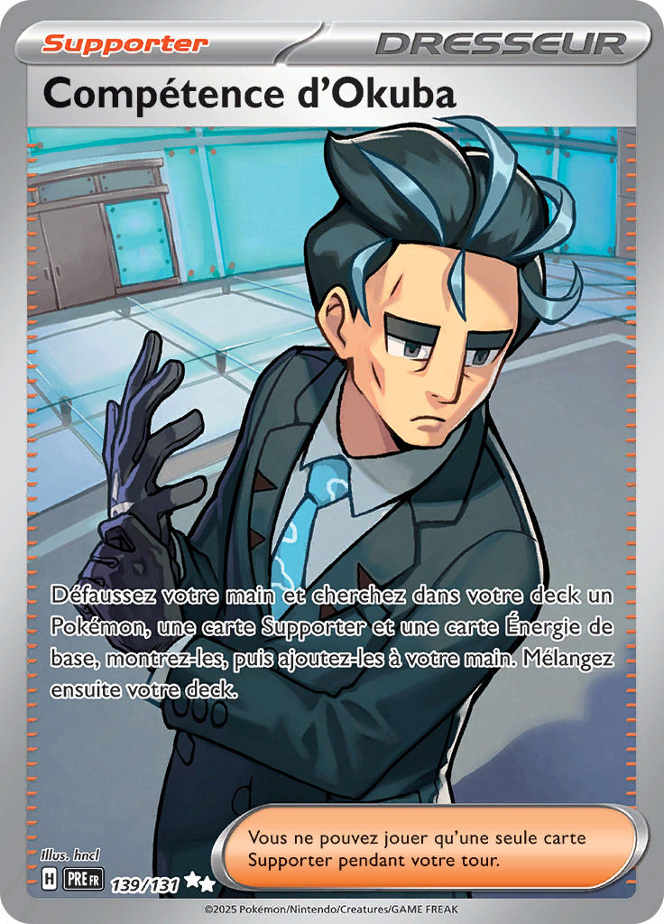 Défaussez votre main et cherchez dans votre deck un Pokémon, une carte Supporter et une carte Énergie de base, montrez-les, puis ajoutez-les à votre main. Mélangez ensuite votre deck.