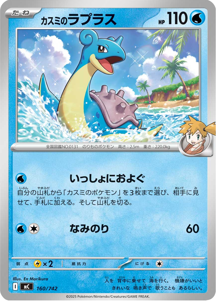 自分の山札から「カスミのポケモン」を3枚まで選び、相手に見せて、手札に加える。そして山札を切る。