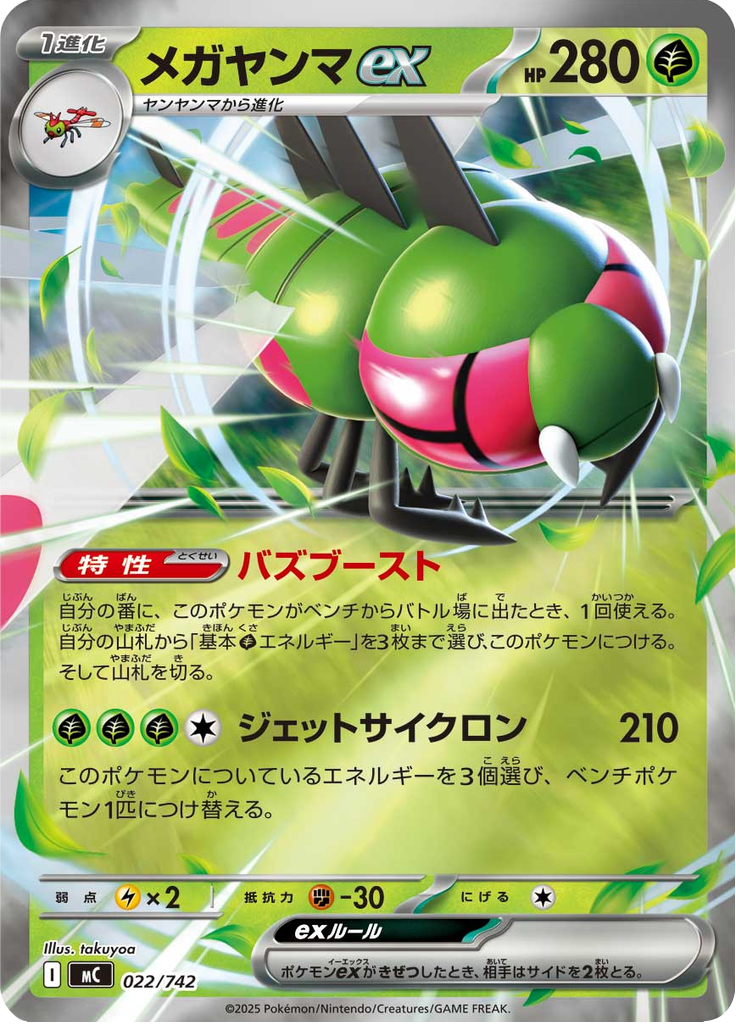 自分の番に、このポケモンがベンチからバトル場に出たとき、1回使える。自分の山札から「基本[G]エネルギー」を3枚まで選び、このポケモンにつける。そして山札を切る。