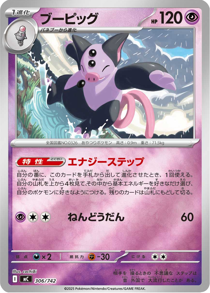 自分の番に、このカードを手札から出して進化させたとき、1回使える。自分の山札を上から4枚見て、その中から基本エネルギーを好きなだけ選び、自分のポケモンに好きなようにつける。残りのカードは山札にもどして切る。