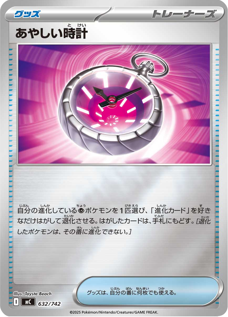 自分の進化している[P]ポケモンを1匹選び、「進化カード」を好きなだけはがして退化させる。はがしたカードは、手札にもどす。[退化したポケモンは、その番に進化できない。]