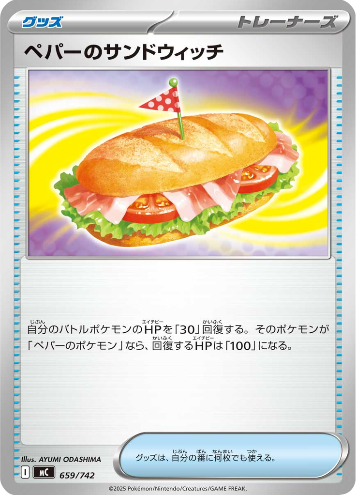 自分のバトルポケモンのHPを「30」回復する。そのポケモンが「ペパーのポケモン」なら、回復するHPは「100」になる。