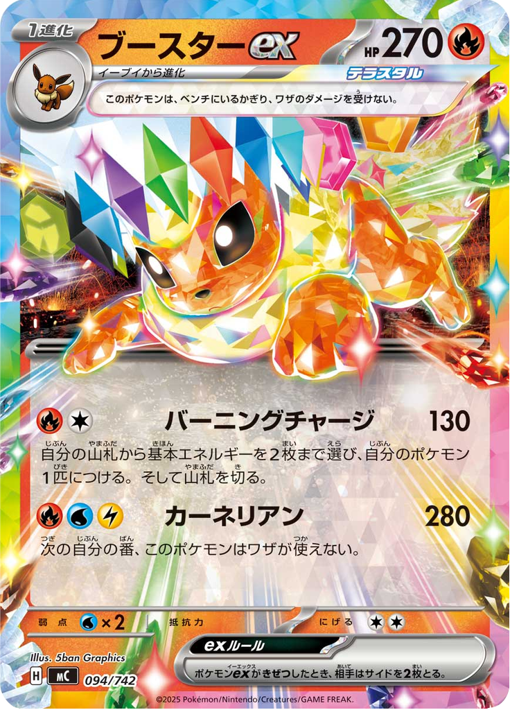 自分の山札から基本エネルギーを2枚まで選び、自分のポケモン1匹につける。そして山札を切る。