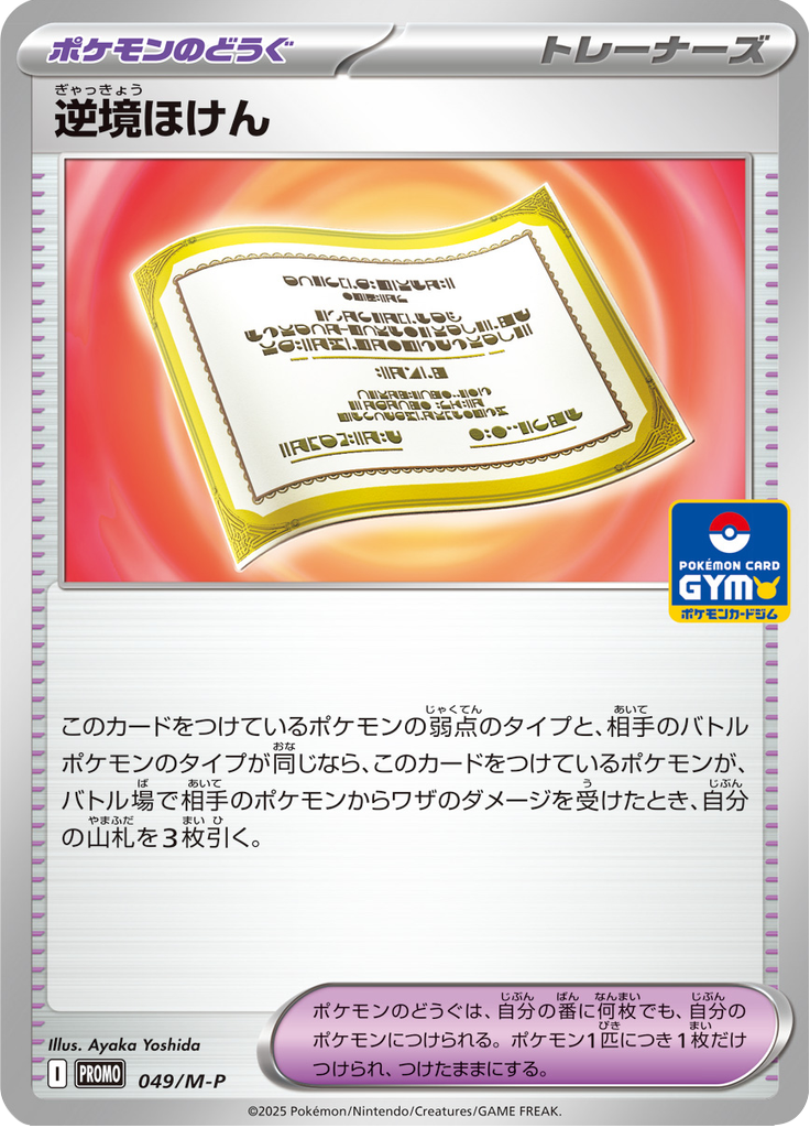 このカードをつけているポケモンの弱点のタイプと、相手のバトルポケモンのタイプが同じなら、このカードをつけているポケモンが、バトル場で相手のポケモンからワザのダメージを受けたとき、自分の山札を3枚引く。