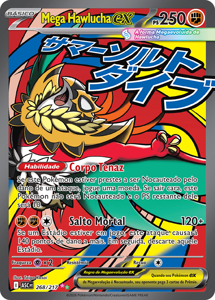 Se um Estádio estiver em jogo, este ataque causará 140 pontos de dano a mais. Em seguida, descarte aquele Estádio.