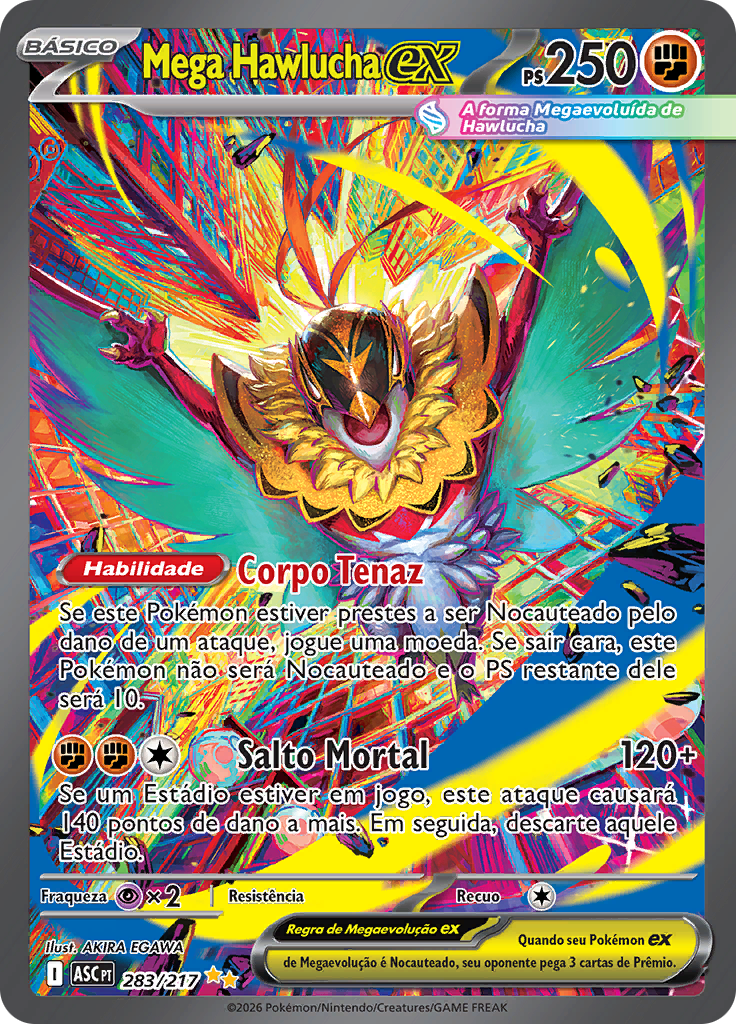 Se um Estádio estiver em jogo, este ataque causará 140 pontos de dano a mais. Em seguida, descarte aquele Estádio.